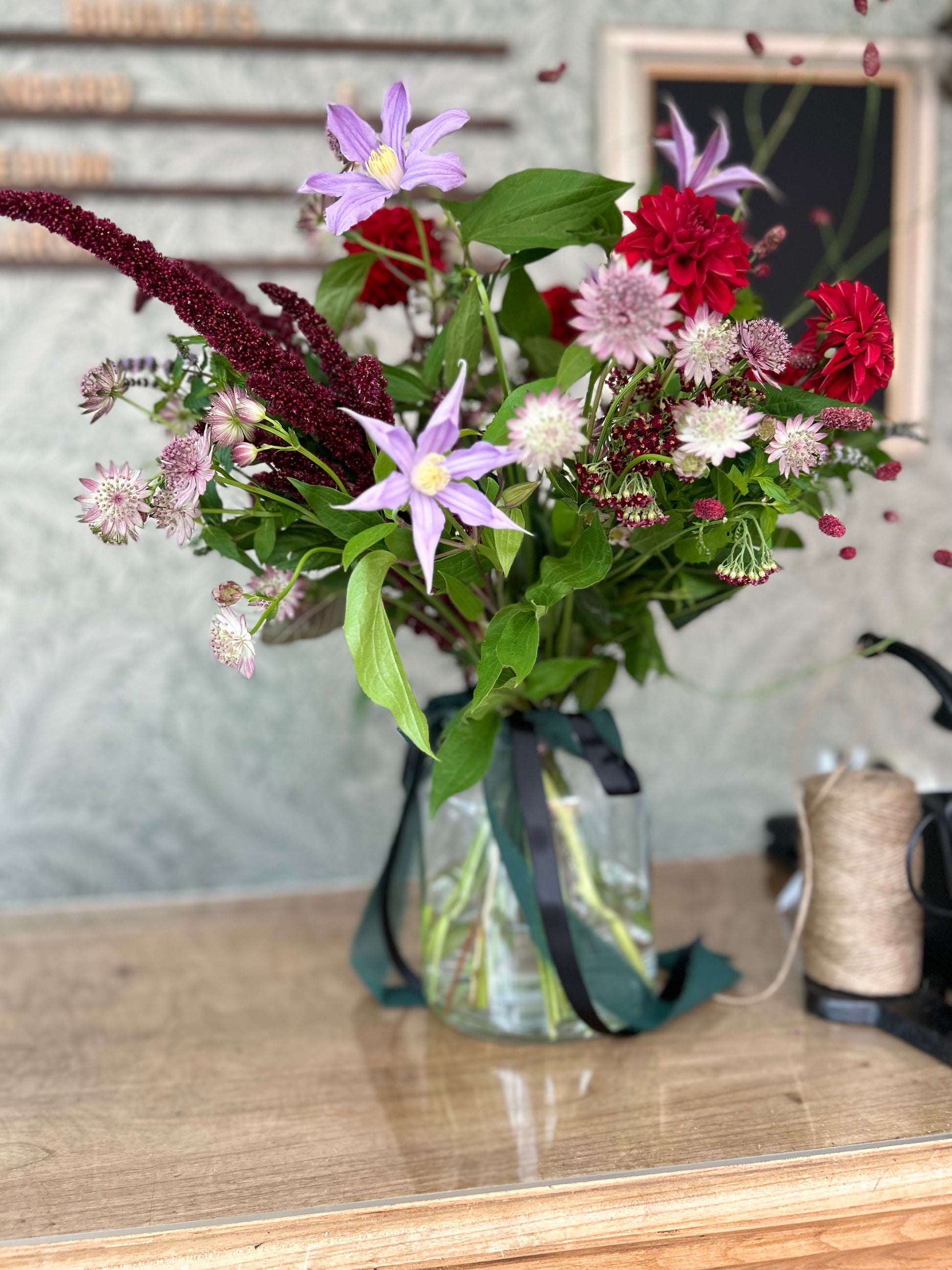 Size Guide This bouquet is available in a Medium (40-45cm) and Large (50-55cm) size. The bouquet photographed is a medium size.