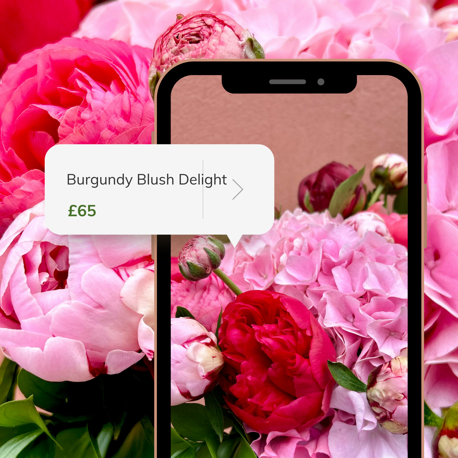 Crafted with the utmost care and attention, Burgundy Blush Deligh is available in sizes ranging from Medium to deluxe during peony season, with the medium arrangement pictured. We strive to provide the highest-quality seasonal varieties and may occasionally substitute stems accordingly.